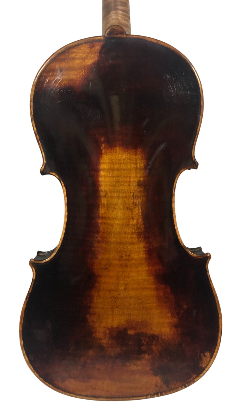 Die Violine hat durch ihre flache gehaltene Wölbung einen tragenden Klang, ihre Ansprache ist leicht, der Ton warm und gereift. Das schöne Instrument wurde in der Fachwerkstatt von UEBEL - since 1725 durchgesehen und spielfertig gemacht.