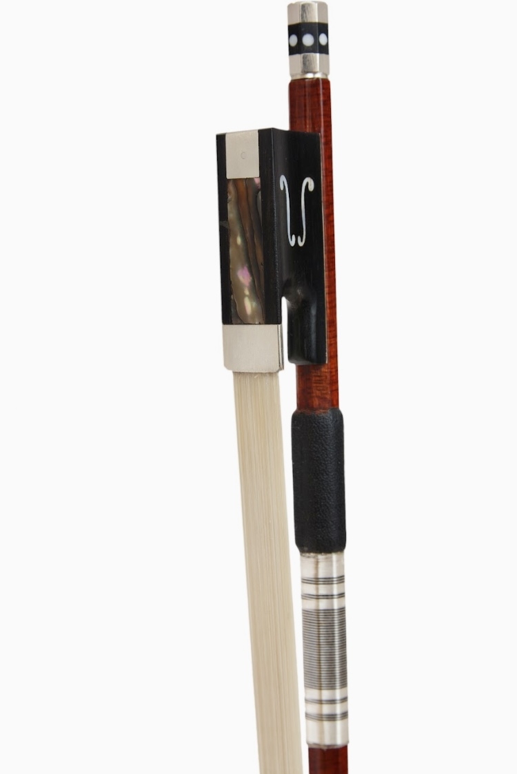 Der Ebenholz-Frosch hat eine schöne Einlage aus Perlmutt in Form von Geigen- Schallöchern.